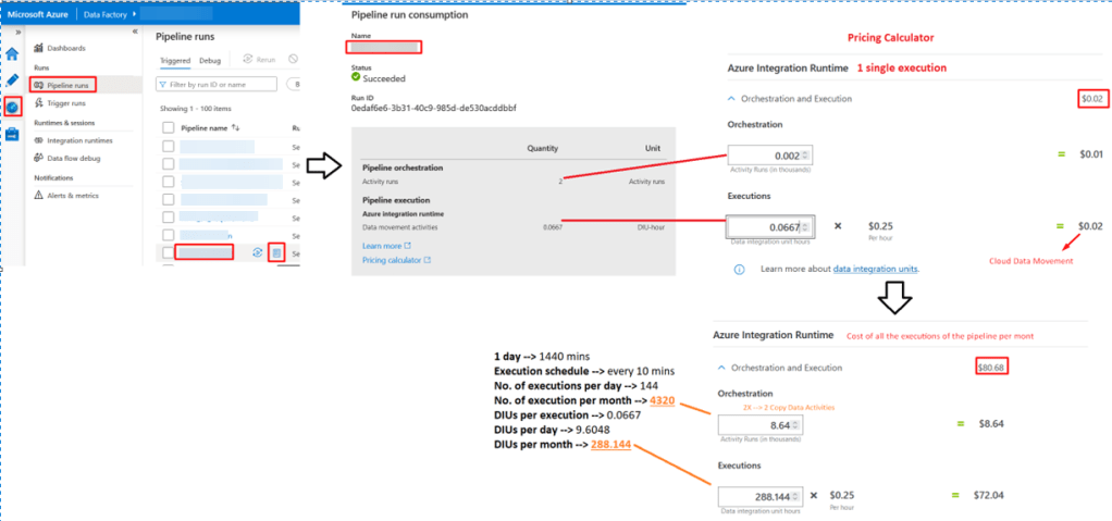 In the image below we will see how to estimate the cost of a pipeline execution on a daily and monthly basis: