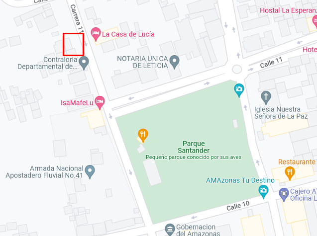 This hotel is in the main street of Leticia: Calle 8. It is very comfortable, the rooms are big, the beds and the bathrooms are nice. It is a self-service hotel. You are provided with a security code that you use at the main door of the hotel. If you need anything, you could always contact the owner and manager. He or any of his sons will help you out with whatever you need. I highly recommend this hotel due to the location and the price. I think it is totally worth the money.