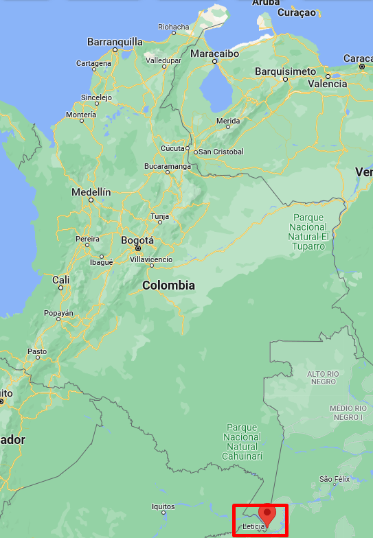 - As you could in the previous image, Leticia is located in the extreme south of Colombia