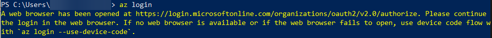 Run the first line of the script: az login. You will see the following message and your browser will pop up, so you authenticate: