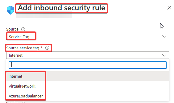 If you click on the rule, you will notice that the property Source service tag does not have any value in it. I’m assuming this is just something that Microsoft needs to fix on its front end. They probably just don’t have setup all the options in these drop-down lists, which means that if we would like to modify, let’s say, the Priority, you would have to do it manually as well via PowerShell or the Azure CLI.